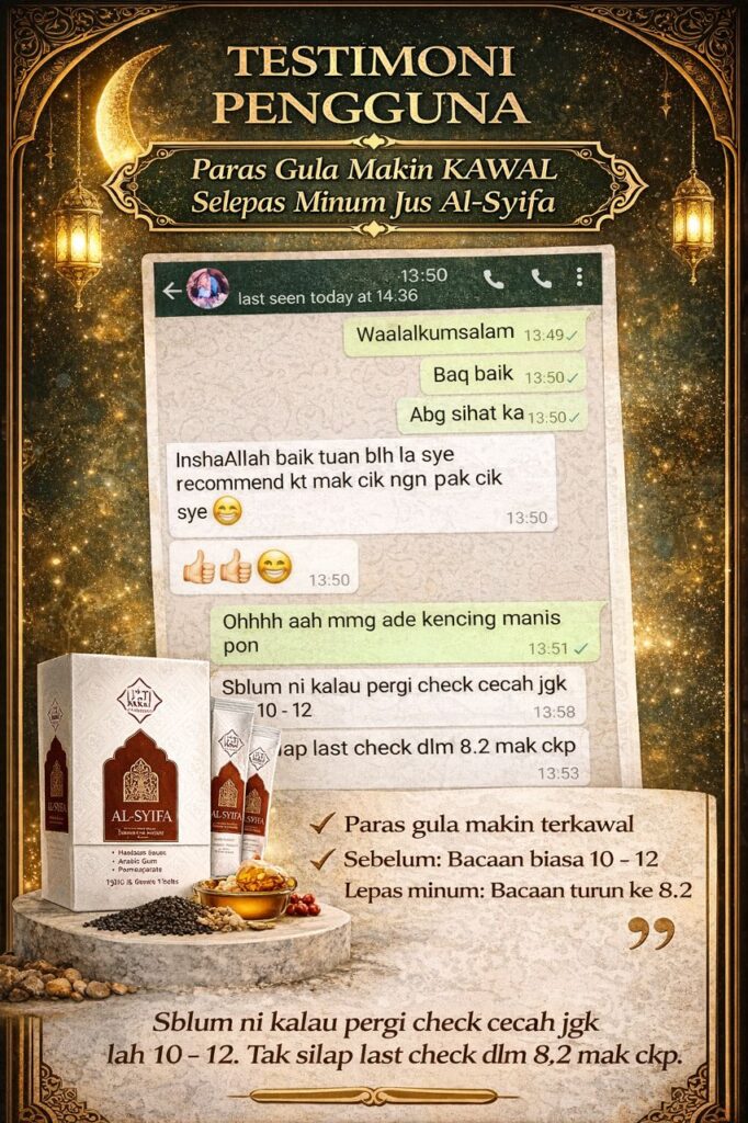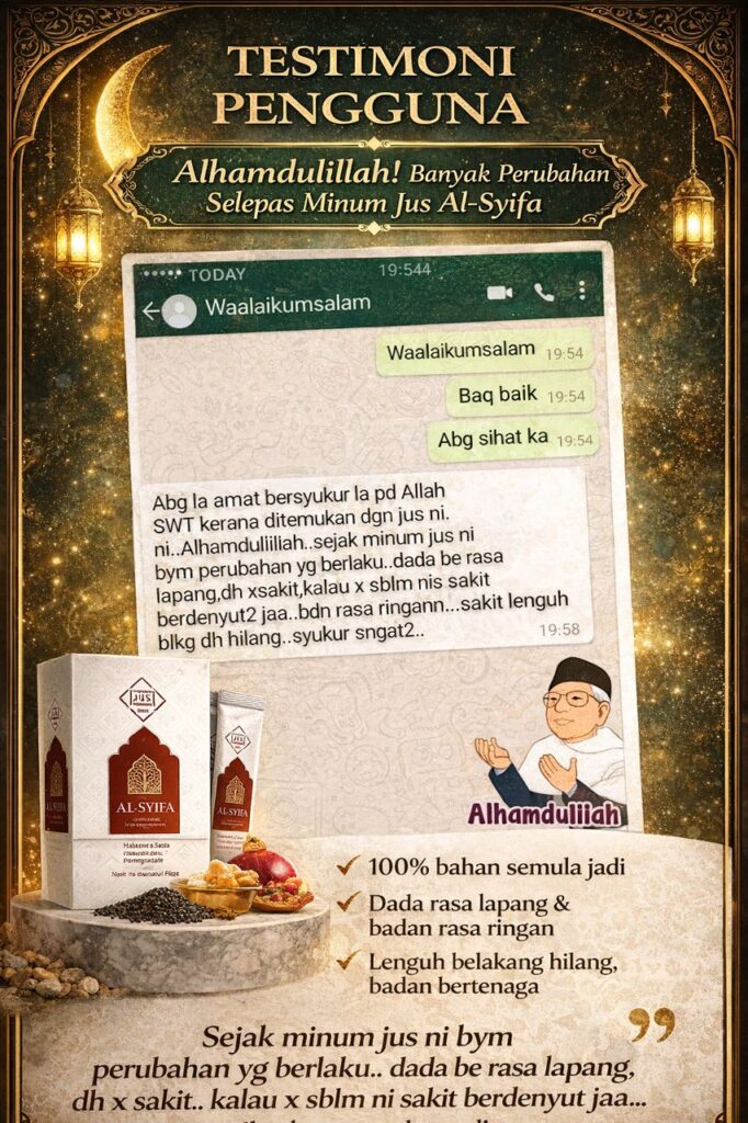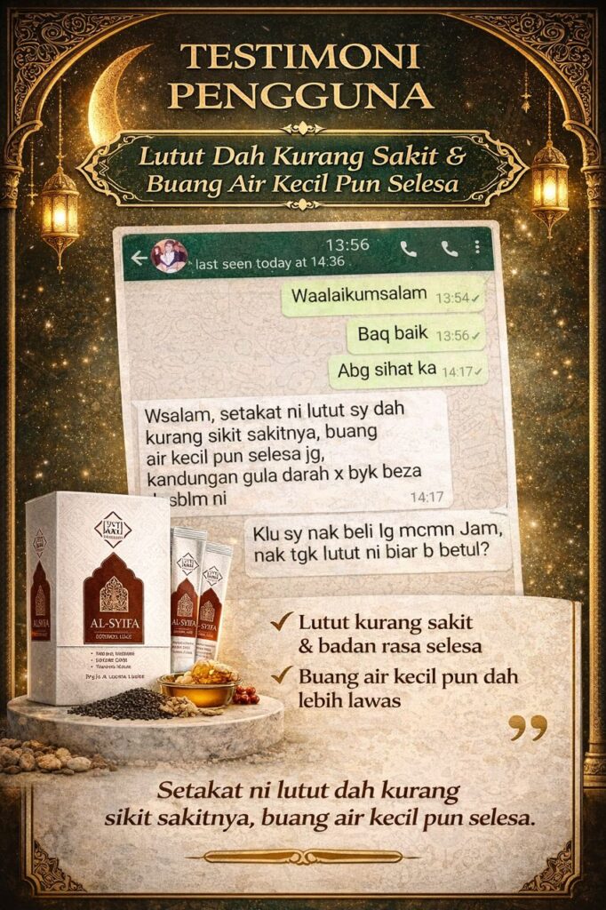 *PENAFIAN: Keberkesanan produk ini bergantung kepada kesesuaian individu. Setiap hasil dari penggunaan adalah berbeza bagi setiap individu. Produk ini akan memberi kesan terbaik sekiranya pengguna mengamalkan dengan cara betul berdasarkan banyak testimoni yang diperolehi. Kita berikhtiar, Tuhan yang menyembuhkan. Pengguna dinasihatkan menggunakan produk ini seperti arahan pada produk. Namun kami tidak bertanggungjawab jika sebarang masalah/komplikasi berlaku kepada pengguna di atas penggunaan produk ini